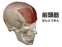 眉を動かしたりするときにも使われる筋肉です。 この「前頭筋」凝ってくると瞼が垂れ下がる大きな原因に!また、目の大きさが左右違うということも起こってしまいます。まず初めに、おでこの緊張と目元の筋肉をダブルでケアしていきます♪