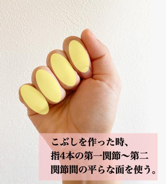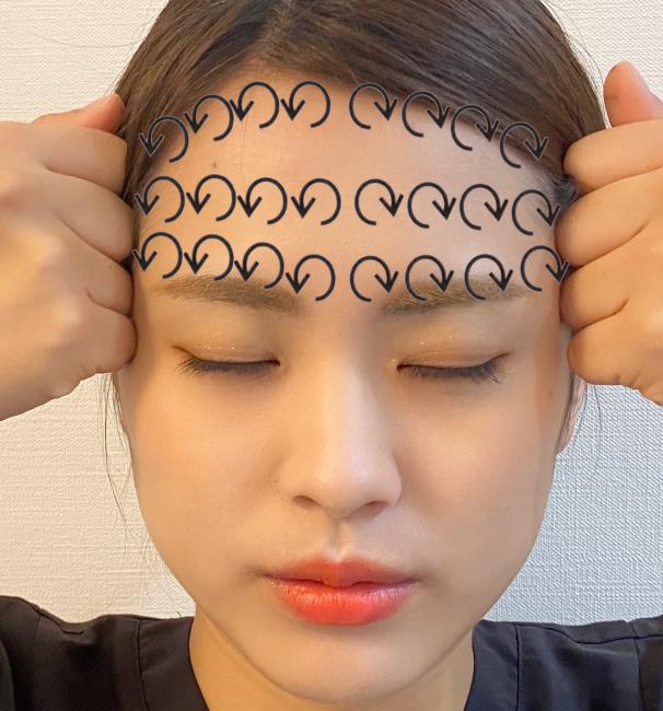 point1両手のこぶしでおでこをクルクルと揉みほぐす