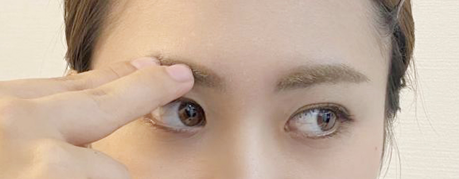 point2人差し指と中指を揃え、指先で眉山のすぐ下を軽く押さえる