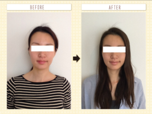 ビフォーはお顔に少し歪みを感じますが、 アフターでは頬の歪みも戻り、 眉毛の位置も平行で、左右対称なりましたね!★ また頭のハチもなくなり、スッキリしていますね(*^▽^*)! 口角も上がり笑顔がとても素敵です!!!コースを終了したお客様のお声