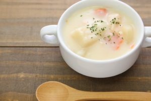冷たいメニューはさけ、温かいスープや味噌汁などを。