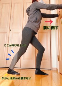 ・膝を曲げているとき、後ろのふくらはぎがしっかり伸びていることを感じてください。