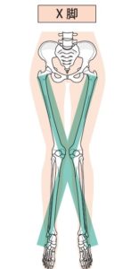 X脚の人はどうしても太ももよりも、ふくらはぎが外側に位置してるので「ふくらはぎが張り出している」ように見えてしまいます。