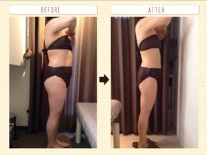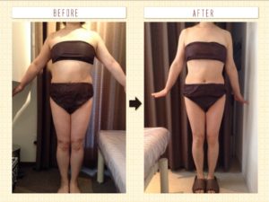 お腹はもちろんですが、足もぴったりくっついていたお肉がなくなってとても細くなりすらっとしたシルエットに変わっています☆