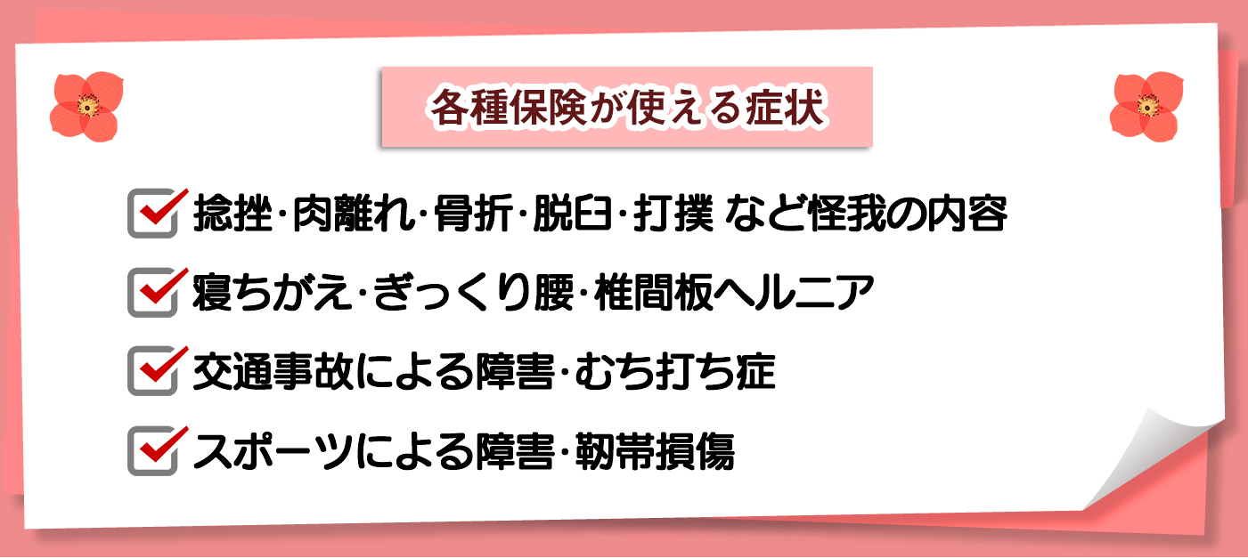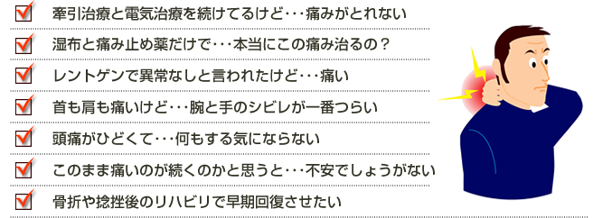 早期に治療をしないと後遺障害が残りやすい傷病もございますので、いち早くご相談・ご来院下さい。