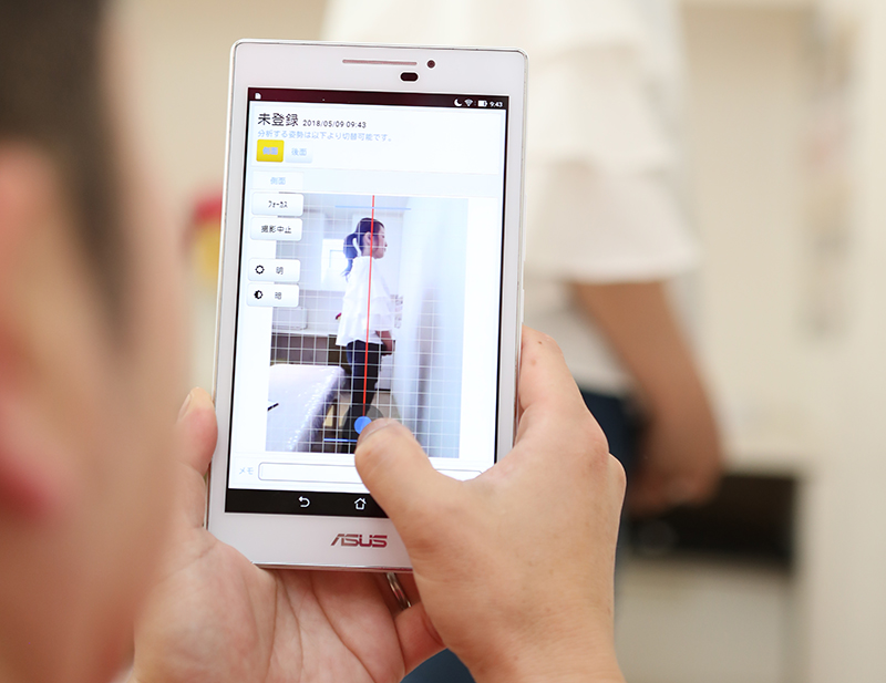 まず患者様のお身体の状態を確認するために『姿勢分析』から行っていきます。身体のバランスや姿勢からなぜ患者様の身体に痛みが出ているのかを明確にしていきます。
